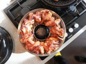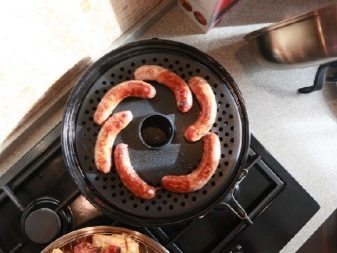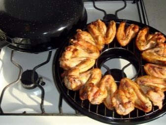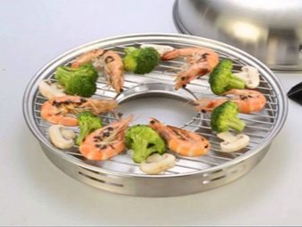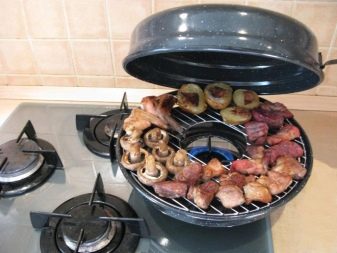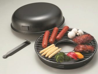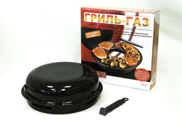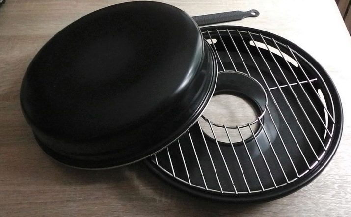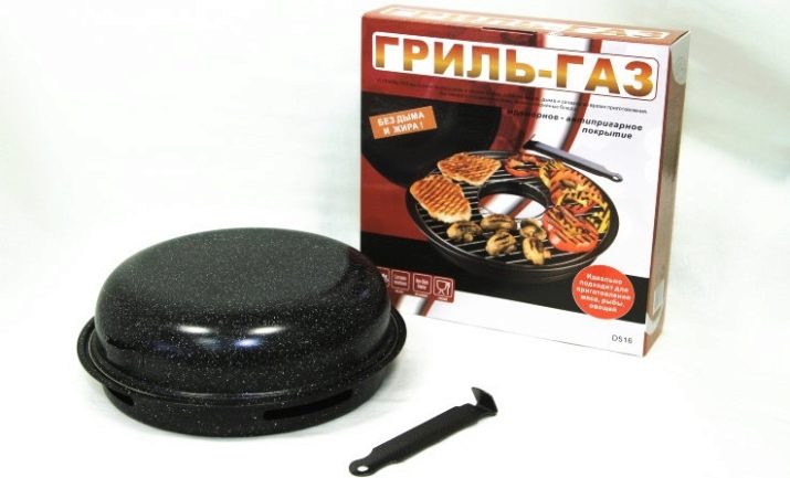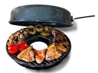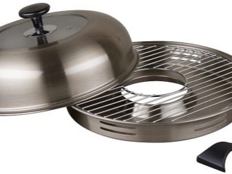 This cookware is intended for use on gas stoves only. The reason for this is its structure. If you give a description, then outwardly it looks like an ordinary frying pan, but unlike it, the model in question has a hole in the center of the pallet. When it is placed on the stove, the gas burner is inside. Also, the pallet has a recess where liquid and fat flow down during cooking. A grill grill is placed on the pallet. Such a pan, like a regular variety, also has a lid. This is a general model, which can have various modifications depending on its value. More expensive solutions usually contain several grids in the kit: regular, for baking, and so on.