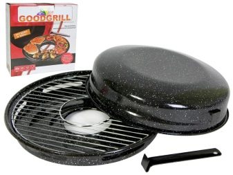 The last model of such a pan, which should be said, has an index D-540. It has a two-layer coating and a grill made of stainless steel. It is very convenient to use for cooking a variety of dishes. The diameter of the pallet here is 320 mm, and the diameter of the hole for the burner is 100 mm.