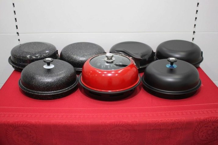 These pans are now easy to find on the market. Most often they are represented by various models that are produced under the brand name "Miracle". If we talk about them more specifically, the first, which I want to say, has a name D-506. It is made of carbon steel and coated with a pair of enamel layers. In addition there is a stainless steel grill. The diameter of the lid is 76 mm, the height of the pallet is 45 mm, and the diameter of the working surface is 330 mm. Its advantages: