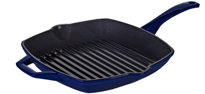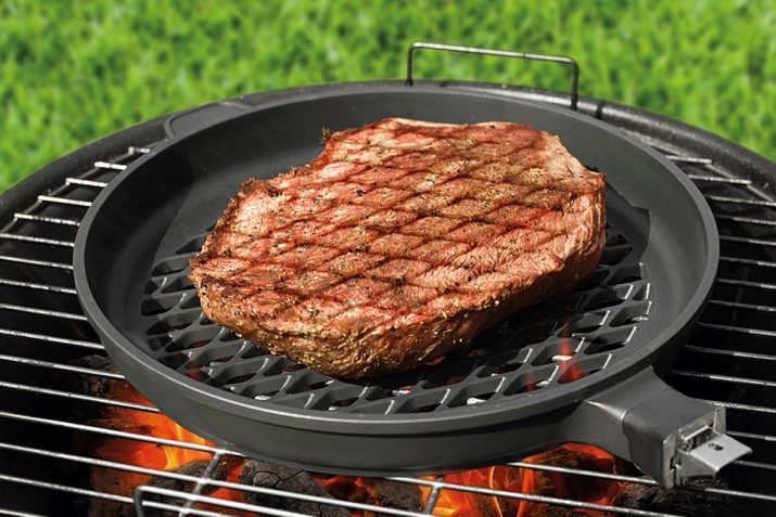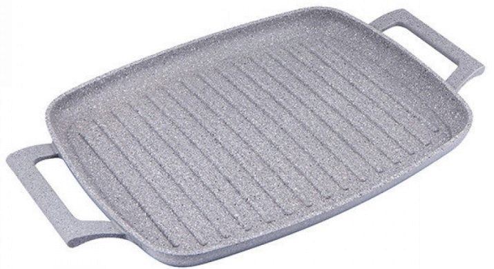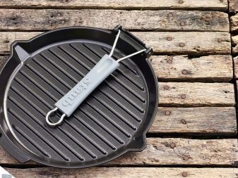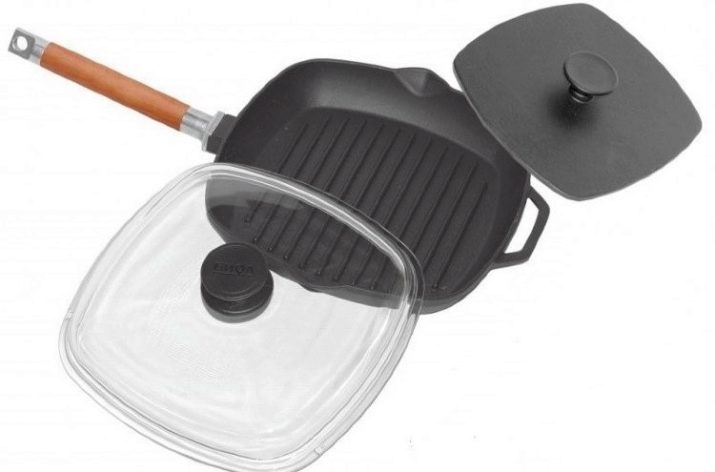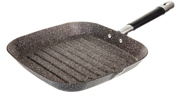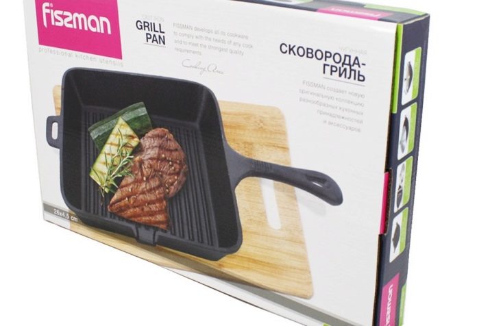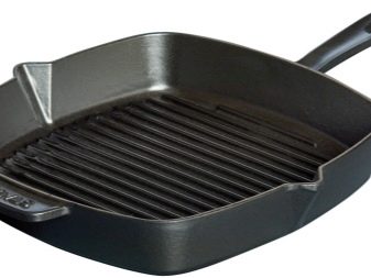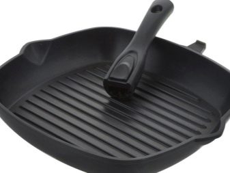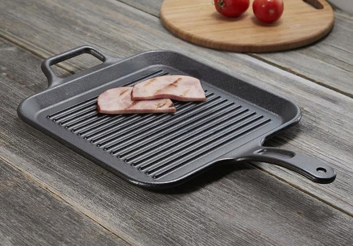 Some firms produce rectangular cast aluminum pans, but the most practical solution is cast iron cookware. They ideally meet the requirements that arise when cooking the grill.