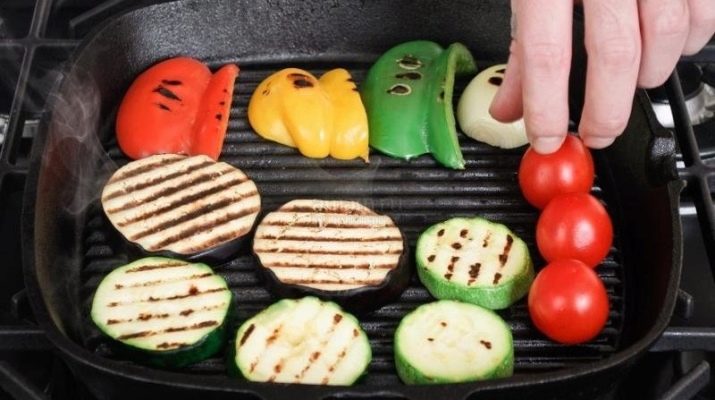 This type of cookware can be used not only for processing meat, poultry or fish. It will turn out quite well to cook both vegetables and fruits. Baked fruits cooked in a grill pan have an unusual taste. Refusal to use oil or its minimal use allows reducing the energy value of food.