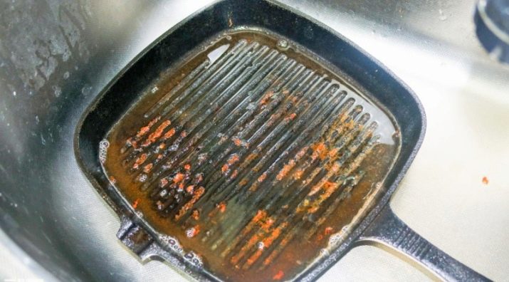 A grill pan requires more complex care than ordinary dishes. Just washing it is not enough. You will need to wipe the entire surface to dryness, and then lubricate it with oil. If you violate these rules, you may encounter intense rusting. And one more nuance - grill pans in most cases are delivered without lids.