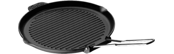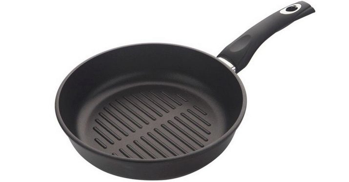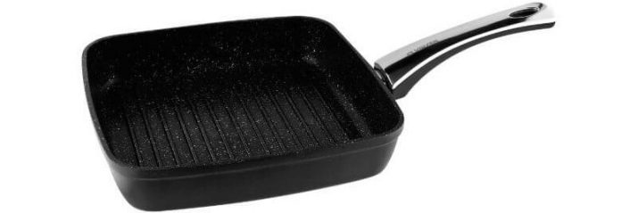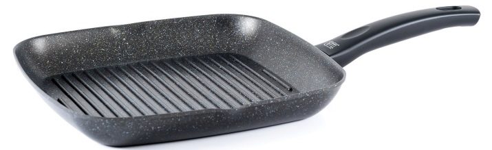 A characteristic feature of a grill pan compared to a conventional pan is a bottom covered with special ribs. It was a ribbed addition that imitated a full-fledged separate grill, and gave the name to this type of cookware. Whatever products are used, they will only partially touch the base. Therefore, in this case, the modes of frying and steaming are actually combined.