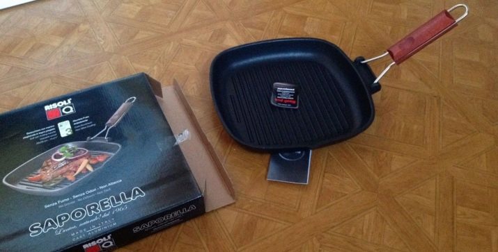 However, the grill pan has obvious disadvantages. It is heavier than ordinary analogues: cast iron products weigh 2-5.5 kg, and made of aluminum - from 1.5 to 2 kg. To this mass will also be added the weight of the products.