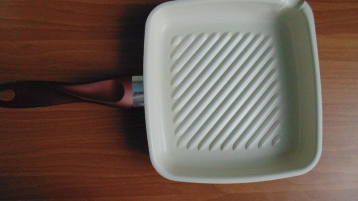 - Giving preference to a ceramic corrugated frying pan, it is important to realize that it is not easy to handle. Positive properties are preserved only in one case - if the pan is protected from prolonged contact with water. In addition, ceramics are easily destroyed by significant temperature changes.