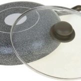 Innovative stone-coated products have become a bestseller. Thanks PTFE Greblon special surface, in the pans of this collection you can cook any products with almost no oil. Dishes are very tasty and rich, preserve vitamins and nutrients. Sanmiro Bakelite handles are always removable, respectively, the dishes can be put in the oven. The bottom thickness of Onyx models is 2.5 mm. The series presents devices with a diameter of 22-28 centimeters with and without a glass lid.