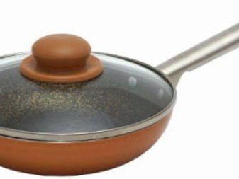 This is a line of premium pans in a beautiful sandy tint. The inner coating of granite has five layers, the outer - four. The ergonomic metal handle is attached to the body with rivets. The dishes are presented in diameters of 20-26 centimeters with and without a lid. The glass lid is equipped with a steam outlet, which allows you to better maintain the rich taste of dishes and the benefits of products.