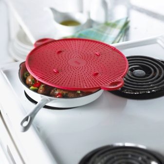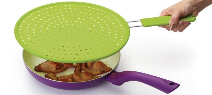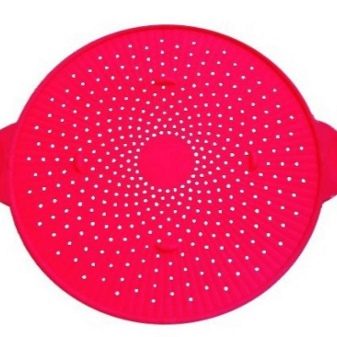 The grid, which is used in the form of a lid for a pan, allows you to avoid contamination of the stove or burn. Various manufacturers offer to use products made of aluminum or other metal. Also found are items made of silicone.
