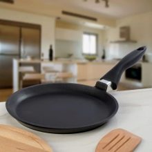 - Pancakes. This category of cookware is presented in three sizes: 22, 24 and 26 cm. The company uses high-quality materials in the production of crepe pans, which ensures fast and comfortable baking of the thinnest pancakes without the use of oil. Low sides provide easy turning of pancakes, a long handle protects against spatter of hot dough, a thick bottom ensures uniform baking of pancakes. After use, the dishes are easy to clean under running water.