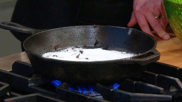 In this case the recovery method will be slightly different because iodized salt will need to be. You will need a layer of at least 1 cm, and pour the product into a frying pan that has already been pre-heated over a fire.