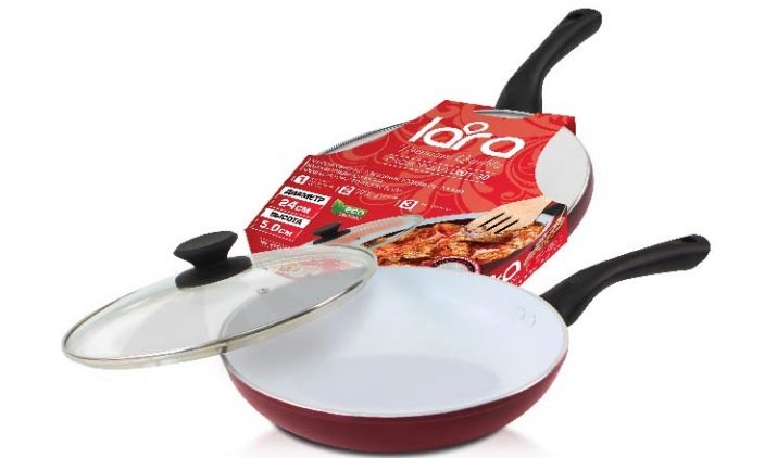 - "Lyubava". The most popular products of this manufacturer are cast aluminum pans with ceramic non-stick coating. They have a thick bottom - 7 mm, walls of 5.5 mm, as well as a convenient removable handle, so the product does not take up much space. The downside is that this pan cannot be washed in a dishwasher, used in an oven and on induction hobs.