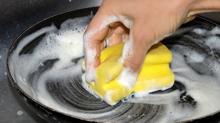 - after use, wait until the pan cools down itself, without forced cooling, then wash it with a sponge moistened with water or a washing solution.