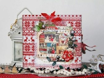 One of the most common options is a beautiful scrapbooking design for a gift you already bought. This scrapbook magic box is a truly sophisticated and unique decor. Anything can be located inside - like a precious thing, money, or a non-trivial trifle. Here you must definitely focus on subsequent use in the interior, so it’s better to use not only the standard New Year's, but just winter decor. To create, you need a template of the right size, paper and decor items.