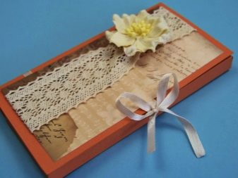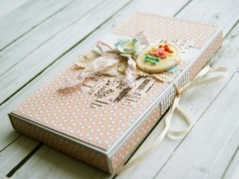 This is a great way to elegantly decorate a sweet gift. With a box of chocolates from the store, now no one will be surprised, but everyone will get a stylish and original chocolate bar with sweets. In addition to sweets, in such boxes you can present money or other small items. The appearance of the chocolate boxes also depends on your taste and the chosen idea, there can be no restrictions here.