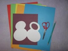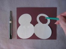 - Fold the cardboard, or thick scrap paper twice, and cut the number 8 so that the figure eight is connected in its lower part. In the upper part of the front side, make a hole in the form of a circle;