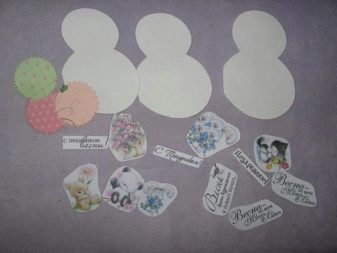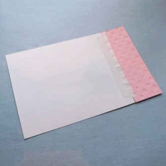 - Glue the resulting front part onto the cut-out base: cardboard, craft or thick scrap paper of the desired size. Glue a flower or other figure to the ribbon with chopped leaves;
