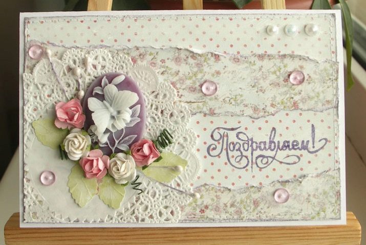 In the process of creating a greeting card with your own hands, you can add volume figures, rhinestones, and beads to it. But remember that measure is important in everything. It is also worth considering several recommendations from professionals: