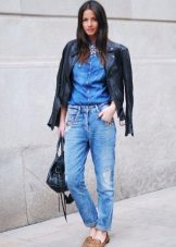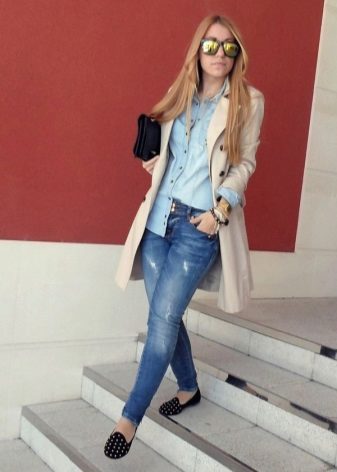 According to stylists, do not wear too long trousers with sleepers. Some musicians and artists boldly wear classic costumes with them. What can epotage stars afford? For people not from show business, such a combination would be inappropriate. Jeans go well with sleepers. True, in this case, it is worth paying attention not to the classics, but to narrowed models. Instead, you can pick up the sitting chinos. This image can be complemented by a t-shirt with a checkered shirt or sweatshirt.