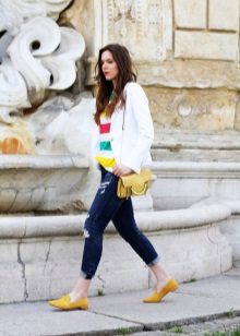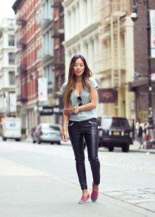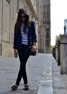 Since sleepers are first of all comfortable shoes, they will complement clothes best in casual style. Cropped skinny jeans or leggings that do not hide the ankle are perfect. A simple T-shirt, as well as a light summer jacket, can complement this kit. Even if all the things from this ensemble are too concise, sleeper with a bright decor will refresh this set and make it not so everyday.
