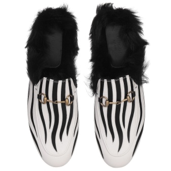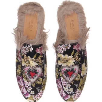 The Gucci brand at one time pleased its fans with leather slippers on fur, they became one of the pieces of the fall-winter 2015 collection. Such an unusual finish looked quite unexpectedly on leather slippers. Wearing these winter sleepers was offered to both men and women.
