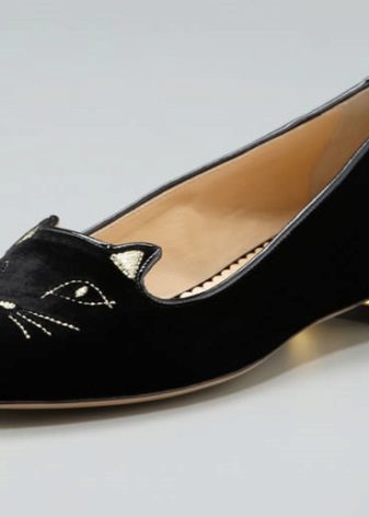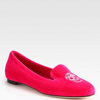Young girls who follow fashion trends are probably familiar with elegant velvety shoes with cats on toes from Charlotte Olimpia. Prada chose a design with sequins for reptiles, as well as flowers and gold for their boots in this style. Designers Valentino pleased the fans with pink sleeper, decorated with black lace or crystals. Christian louboutin launched a line of spiked leather and satin slippers.