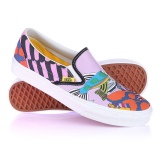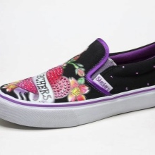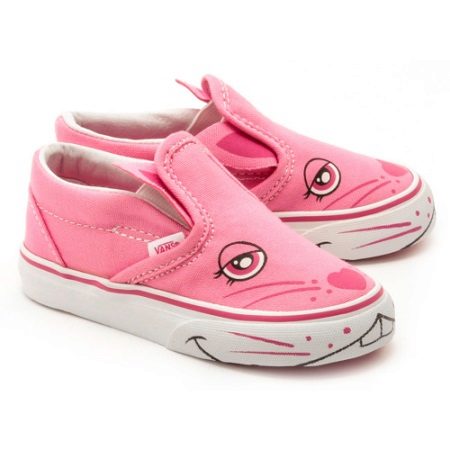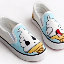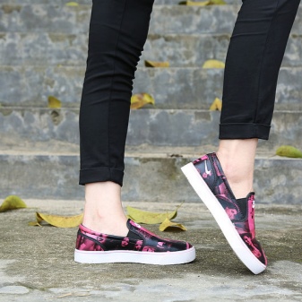 In addition, slip-ons for girls can have a print (floral, geometric, polka dots, stripes) or even a picture in the form of images of favorite fairy-tale and cartoon characters. Multicolored models look unusual and fun.