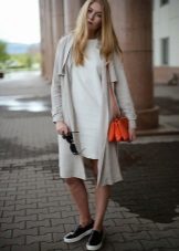 Not all dresses are suitable for slip-ons. But one of them, a shirt dress, is definitely suitable. Such a dress can be chosen in different colors, with different lengths. It can be both tight and spacious.