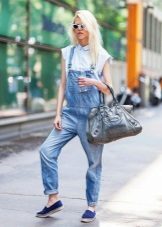 Jumpsuit is another great choice to dilute numerous looks with jeans. Black overalls with slightly cropped trousers look impressive and stylish. They can be supplemented with a dark or colored jacket and slips of calm shades. White, light gray, black or checkered will be ideal.