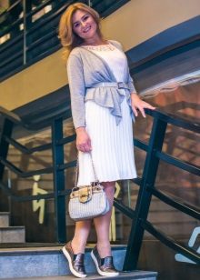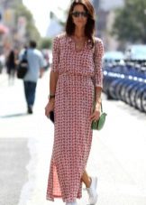 A printed flared dress to the bottom blends harmoniously with slip-on sneakers. The outfit cannot be called sports, it does not fit the category of classics. Something between them, but so attractive and simple. You don’t even need a lot of accessories, just a clutch and a large watch - the bow is organic and holistic.