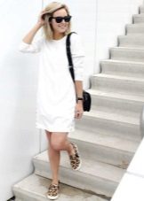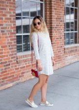 The summer look with a white dress and slip-ons looks gorgeous and very cute.Stylists advise adding zest with the help of bright accessories - necklaces, bracelets, earrings.