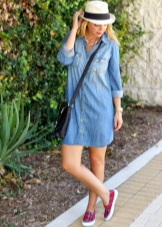 - Dress-shirt - a trendy thing that has a simple concise cut. It is ideally combined with slip-ons, creating a comfortable version of clothes for every day. This dress has several varieties: loose, fitted, with a strap.