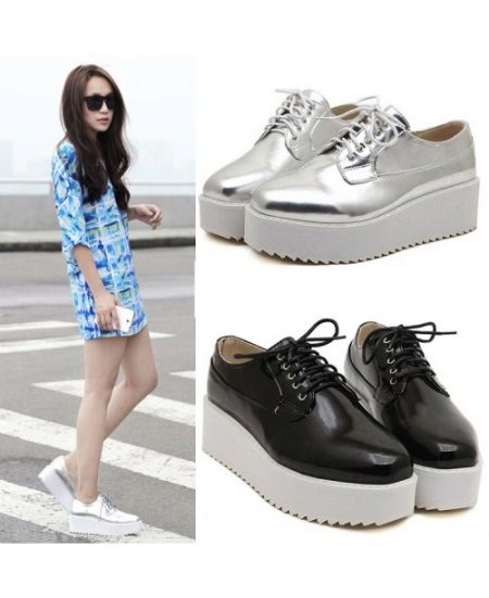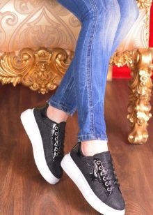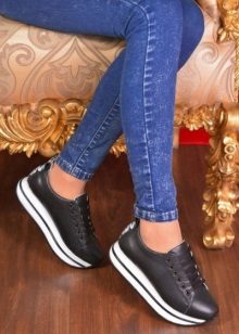 Slip-ons with laces are essentially sneakers with a thick sole (this can be a platform or wedge heel). However, this shoe cannot be considered an exact analogue of classic sneakers, since it has its own characteristic features. Shoelaces, unlike sneakers, here rather perform a decorative function and do not carry a significant functional load.