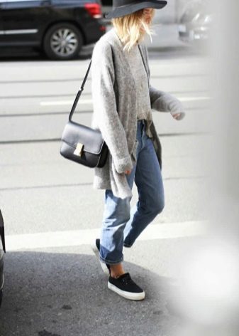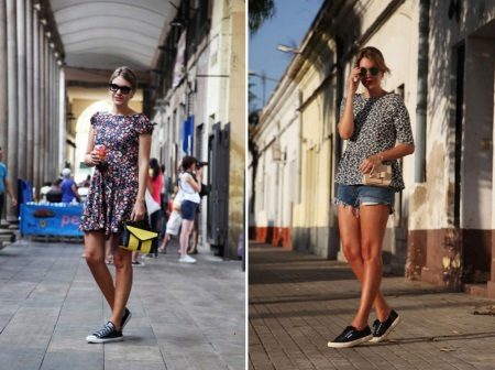 However, these comfortable shoes are not limited to a combination with trousers. A good set can also work with a dress, the main thing is to choose an outfit that does not contradict the style of the slip-ons. You can wear a sports dress with a hood in either military or urban style. Remember that the more romantic the clothes look, the thinner the sole of the shoe should be.