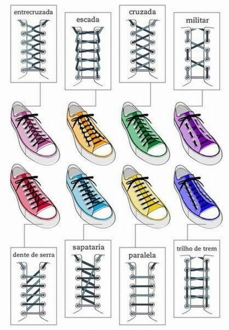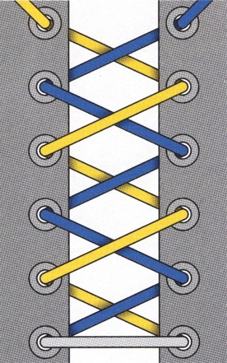Not everyone knows that the number of types of lacing is in the hundreds. The most common is the traditional cross-over method, as well as the usual straight lacing. In shoe stores, a method such as passing one tip of the lace into the upper hole is common, and further manipulations occur already at the other end.