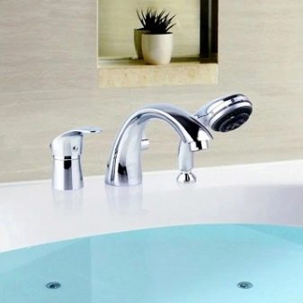 Faucets installed aboard the bathtub look very elegant. They allow you to save space, while the water in the bath is typed without spraying. The shower head is hidden between the wall and the side of the bath. However, there are also disadvantages. Firstly, such mixers withstand a large load, and therefore often break down. And secondly, the shower hose, constantly in a twisted position, also quickly fails.