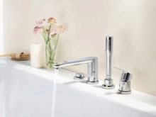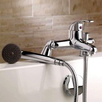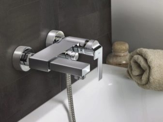 The one-handle bath mixer is wall mounted - it is attached to two water points by means of eccentrics. Often has an additional output to a shower head. There is a gander - a diversion movable tube that increases the range of water supply. Also in the bathrooms a faucet mounted on the sink can be used.