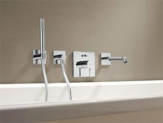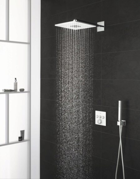Built-in shower faucets are indispensable items when designing a bathroom in a minimalist or hi-tech style. The laconic appearance of the plumbing allows you not to clutter up the space of the room, and the ability to connect several hoses will allow you to install not only a hygienic shower, but also a tropical and massage one.