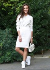 For the embodiment of a romantic image, it is worth giving preference to dresses. With white sneakers, gray and white dresses look great. For a refined look, wear a lace dress. Although many believe that such an ensemble is inappropriate, today it is the trend of the season. White sneakers can also be worn with evening dresses.