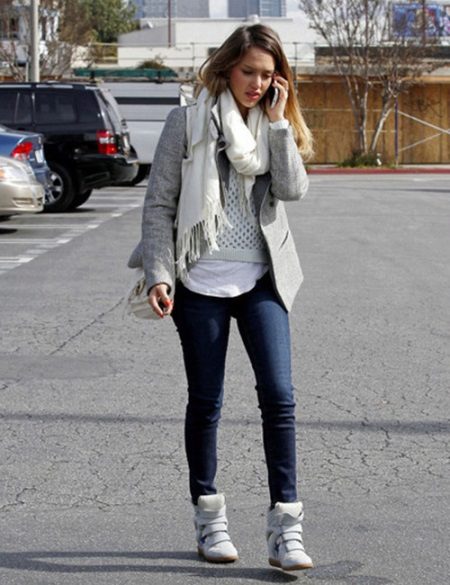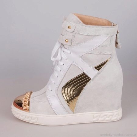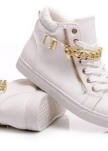 For the cold season, sneakers are represented by insulated models. Quite often it is white sneakers. They can be decorated with fur. White shoes complemented by snow-white fur look harmonious and elegant.