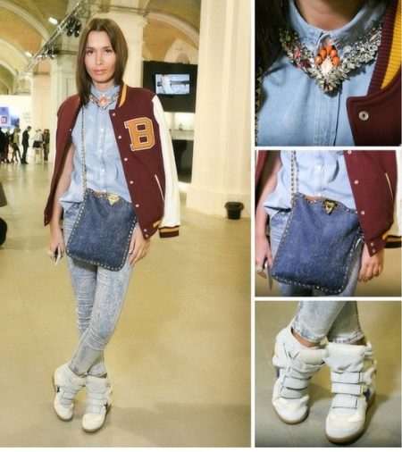 If you are into sportswear, white sneakers will add elegance to your look. They can be combined with shorts or a narrow black skirt. In this outfit, you can go for a meeting with friends or for a walk. In general, the combination of blue and white always looks advantageous.