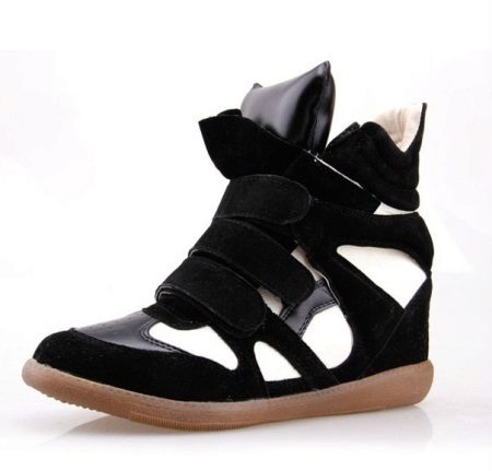 Black and white sneakers can be black with small white accents or vice versa. Such models are usually presented with Velcro or lacing.