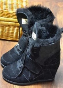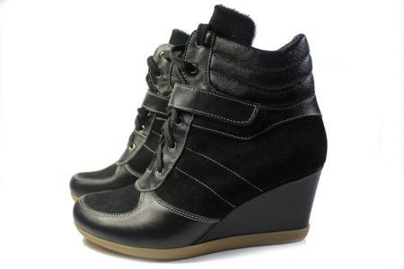 Black sneakers with a fur lining are ideal for the cold season. Natural sheepskin is very popular because it is very warm and soft. Many models have fur not only inside, but also outside for decoration. Designers offer fashionable models of black sneakers with a wide fur lapel or a thin edge.