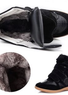 Sneakers are made not only with natural fur, but also often contain synthetic insulation. For decor, faux fur can be used.