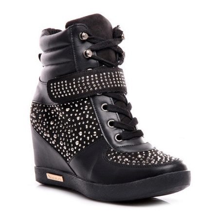 Among the varied decor, black sneakers with rhinestones look spectacular and elegant. They can go to a party or a night club. Red-black models will become a bright accent of everyday look, add new colors.