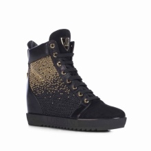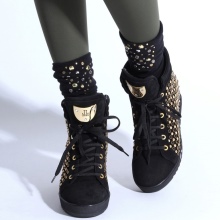 - Designer sneakers, generously decorated with rhinestones, gold or silver rivets, gold chains or buckles.