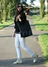 White sneakers They look very stylish with ripped jeans and a shirt, with leggings and even with a light dress, with a white T-shirt and shorts. To add brightness to the image, you can wear trousers with a bright vegetable print and a plain t-shirt.