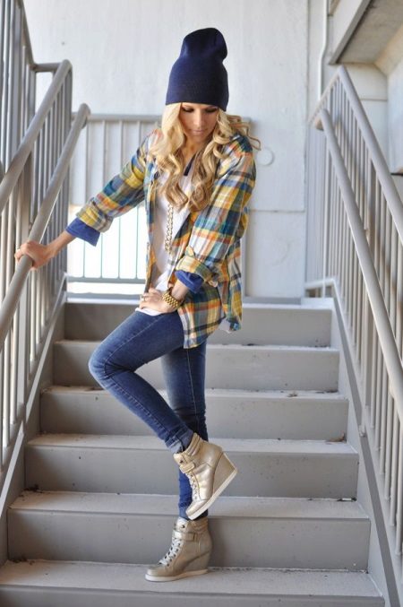 Stylish shoes are not only stilettos, but also wedges, for example, fashionable sneakers. Many stylists do not agree with this, not considering them fashionable. Although this is not so. Sneakers - comfortable, fashionable and unique shoes. In fact, sneakers are platform sneakers. In none of the types of shoes can this be found. Today, the design of sneakers is so diverse that everyone will choose an affordable model. Sneakers allow you to be taller and do not let your legs get tired. These shoes are perfect for both teens and girls after 20. Sneakers have become popular not so long ago, gaining respect from many girls.