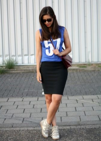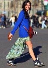 Many girls actively combine stylish sneakers with trendy light or tight dresses, creating a kind of feminine image, diluted with a bully "drop" of sports style.