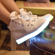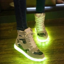 A very interesting design solution is the luminous sneakers. To be more precise, it is not the product itself that shines, but only its sole, creating the appearance of flight. Such shoes look rather unusual and new, but are made mainly in a sports style, so it will be best combined with a trouser bottom.
