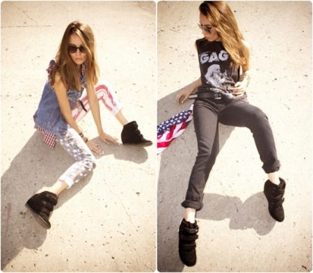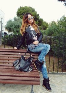Cheeky sneakers with spikes and metal buttons also do not lose their popularity for several seasons. A fragile girl in pretty cute and romantic clothes and such massive biker-style shoes looks very stylish and “tasty”.